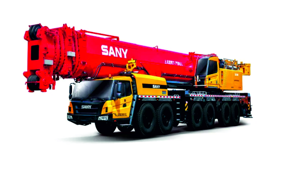 Mobile, tower, or crawler cranes for lifting heavy materials and machinery on construction or industrial sites.